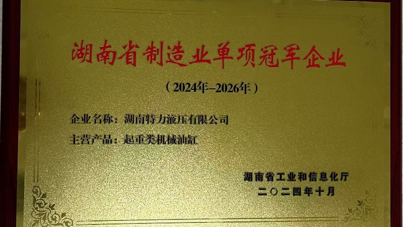 近日,公司憑借著起重類機(jī)械油缸的卓越技術(shù)實力和市場領(lǐng)導(dǎo)地位,正式被湖南省工業(yè)和信息化廳授予“湖南省制造業(yè)單項冠軍企業(yè)”榮譽(yù),標(biāo)志著我司成為該細(xì)分領(lǐng)域的標(biāo)桿企業(yè)。